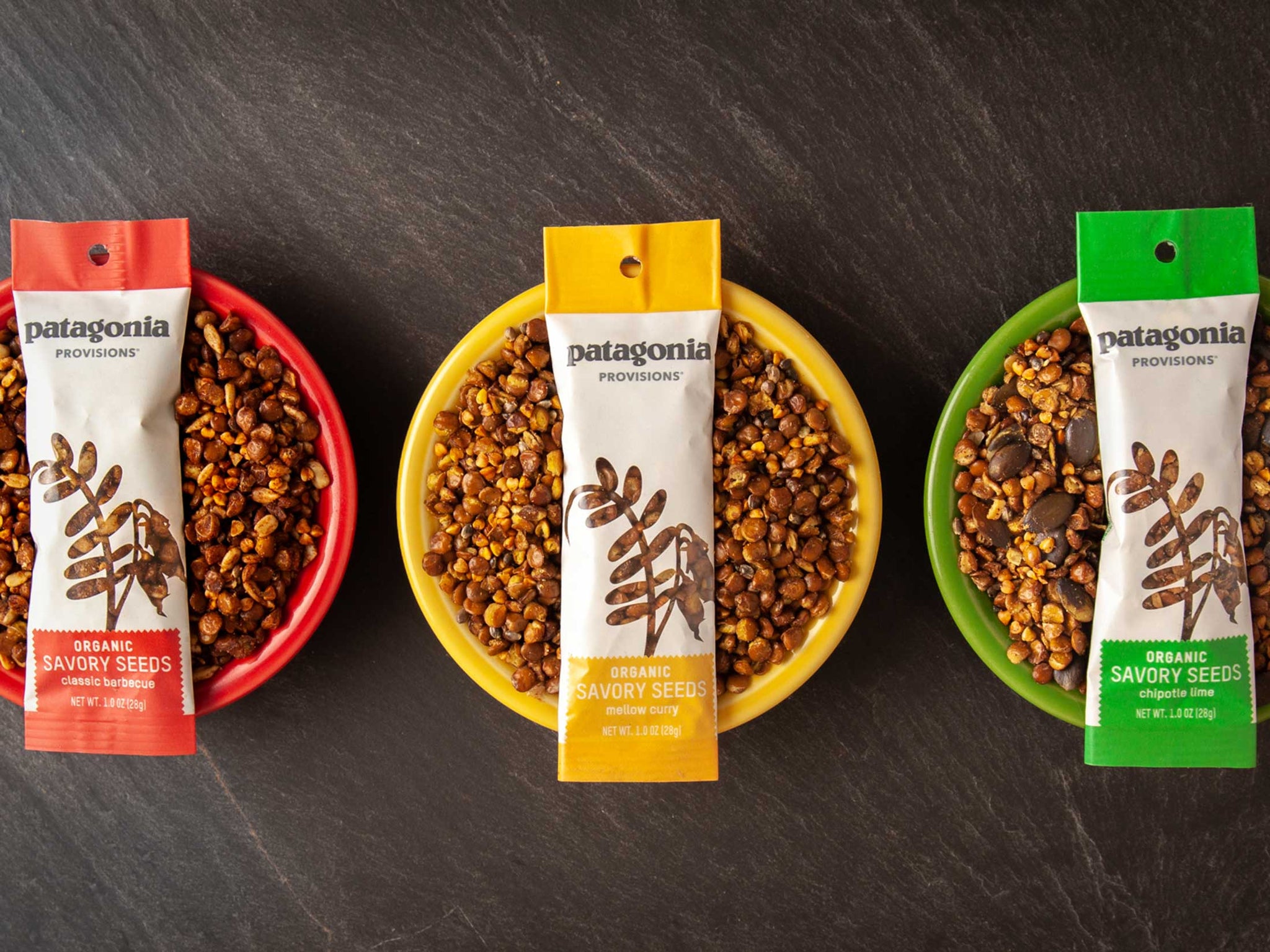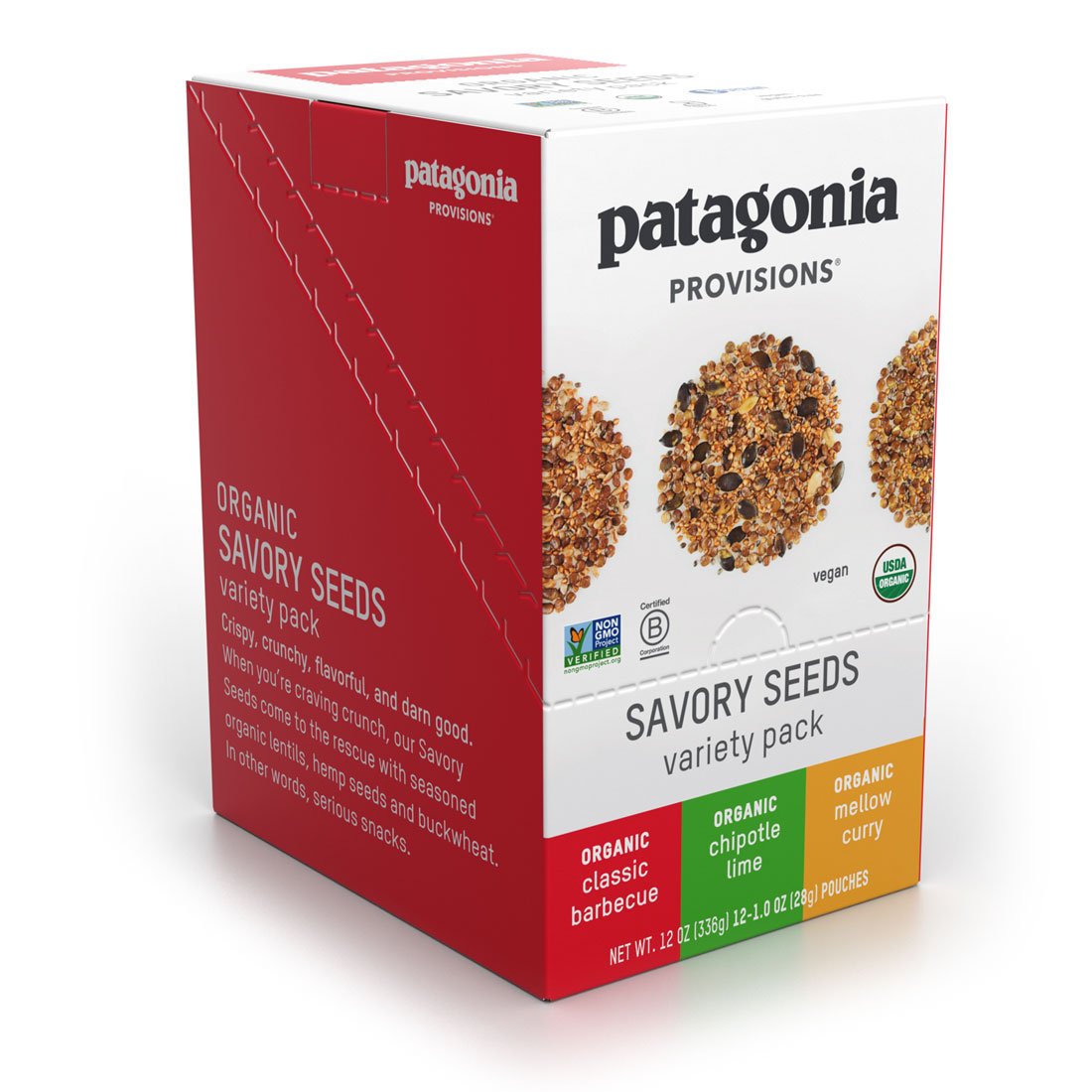 All three of our crunchy Savory Seeds snacks: Organic Mellow Curry, Chipotle Lime, and Classic Barbecue. Four 1-oz pouches of each. Excellent on salads, soups, and your morning avocado toast.