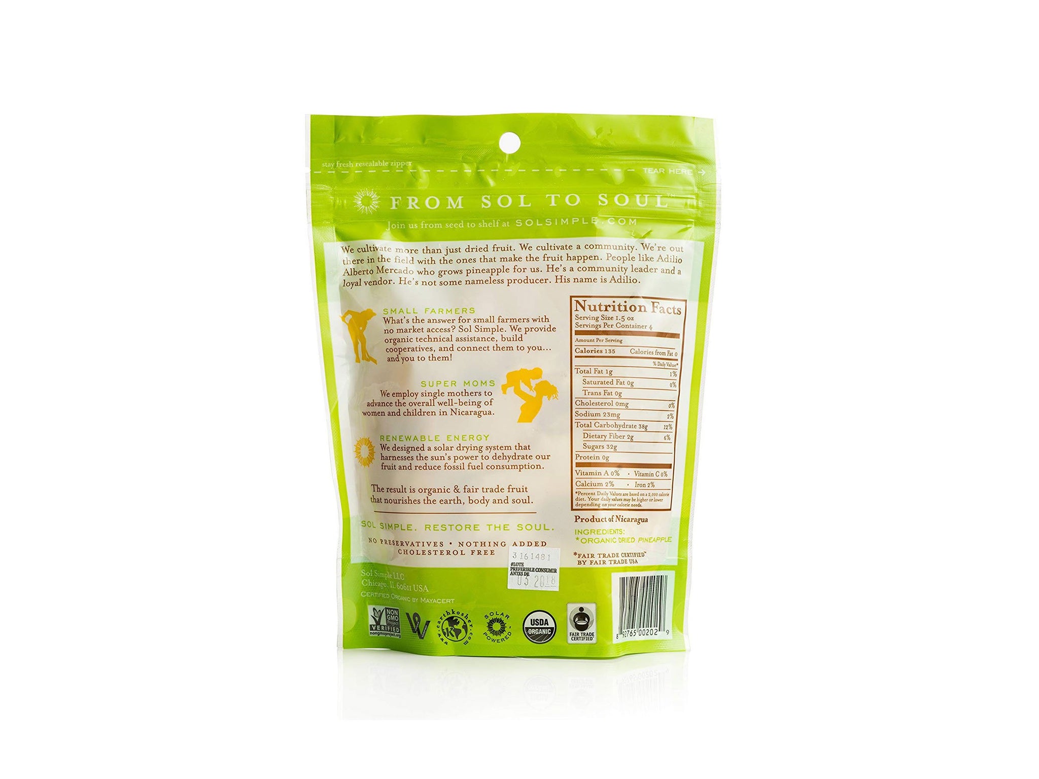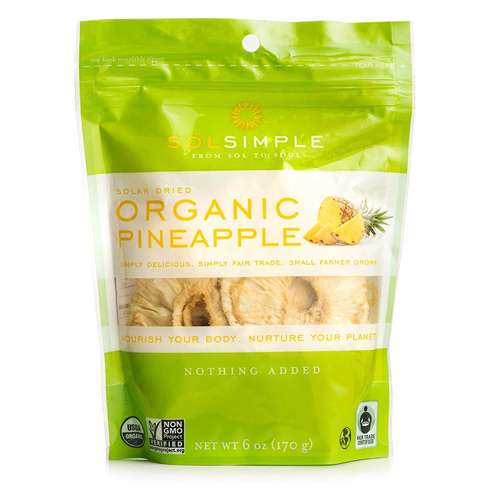 Sol Simple pays a premium for their solar dried sweet and sour, organic pineapple because they naturally taste much better than its sugared competition.